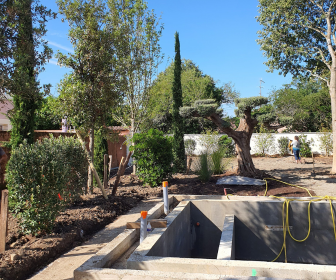Création d’un système de subirrigation accompagné de la mise en place de gazon de placage et plantation.