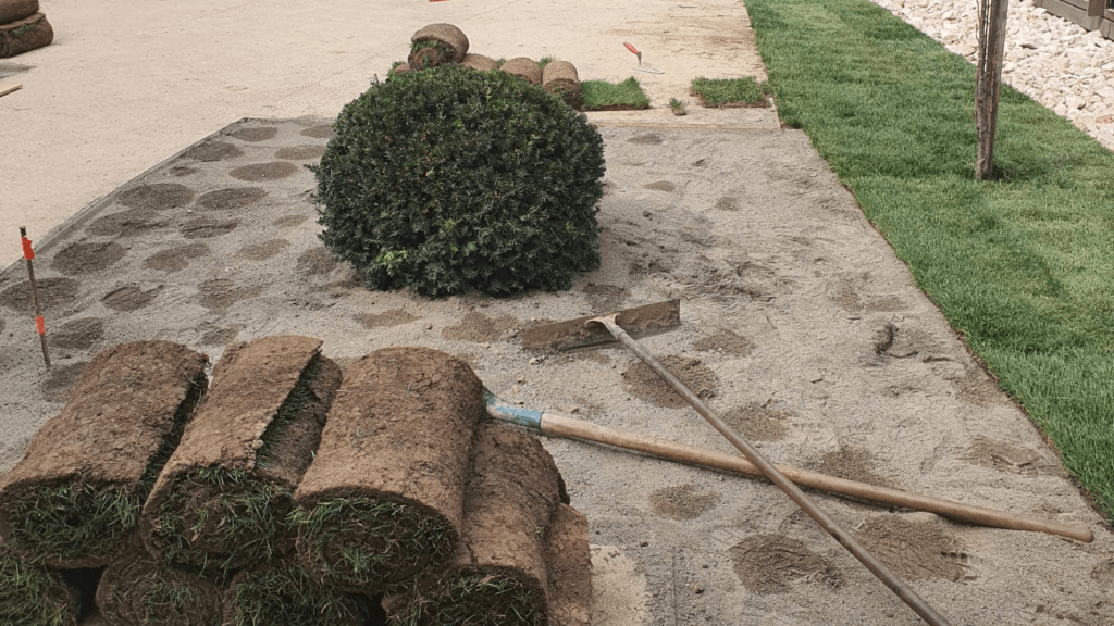 Création d’un système de subirrigation accompagné de la mise en place de gazon de placage et plantation.